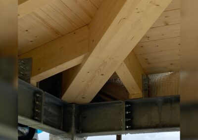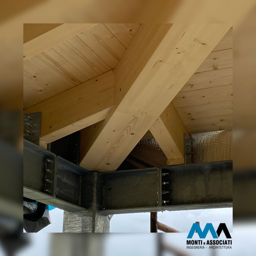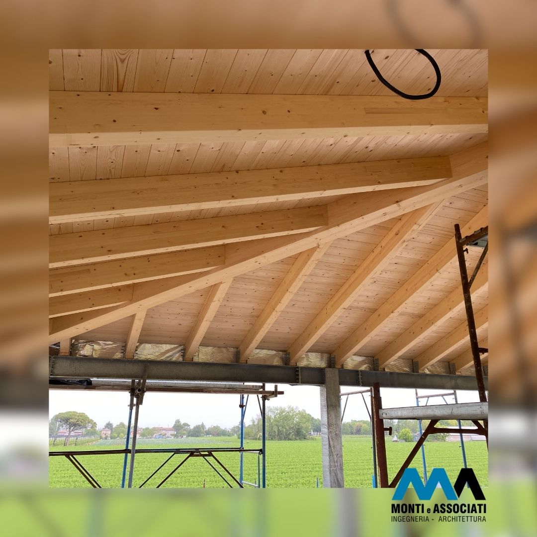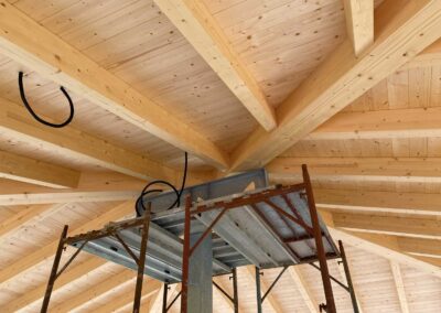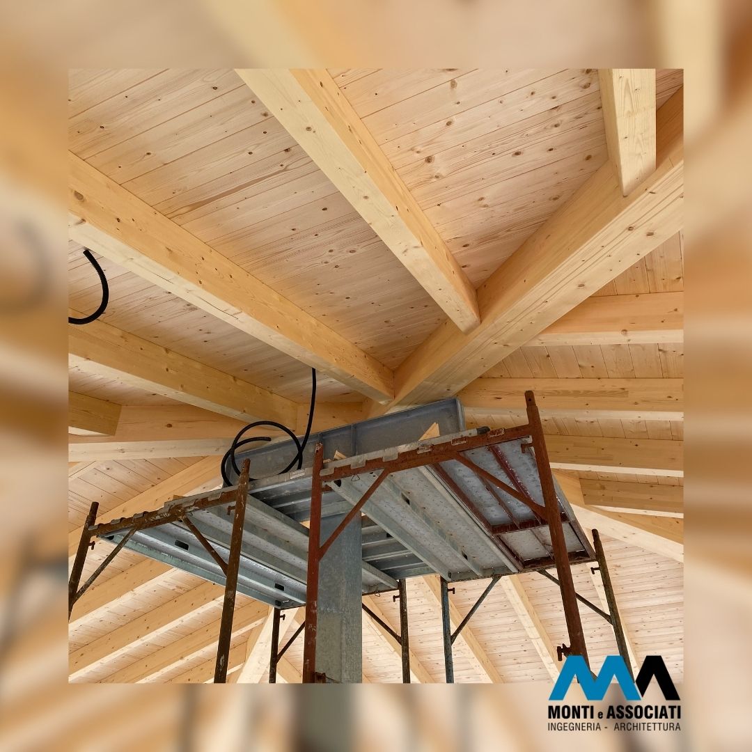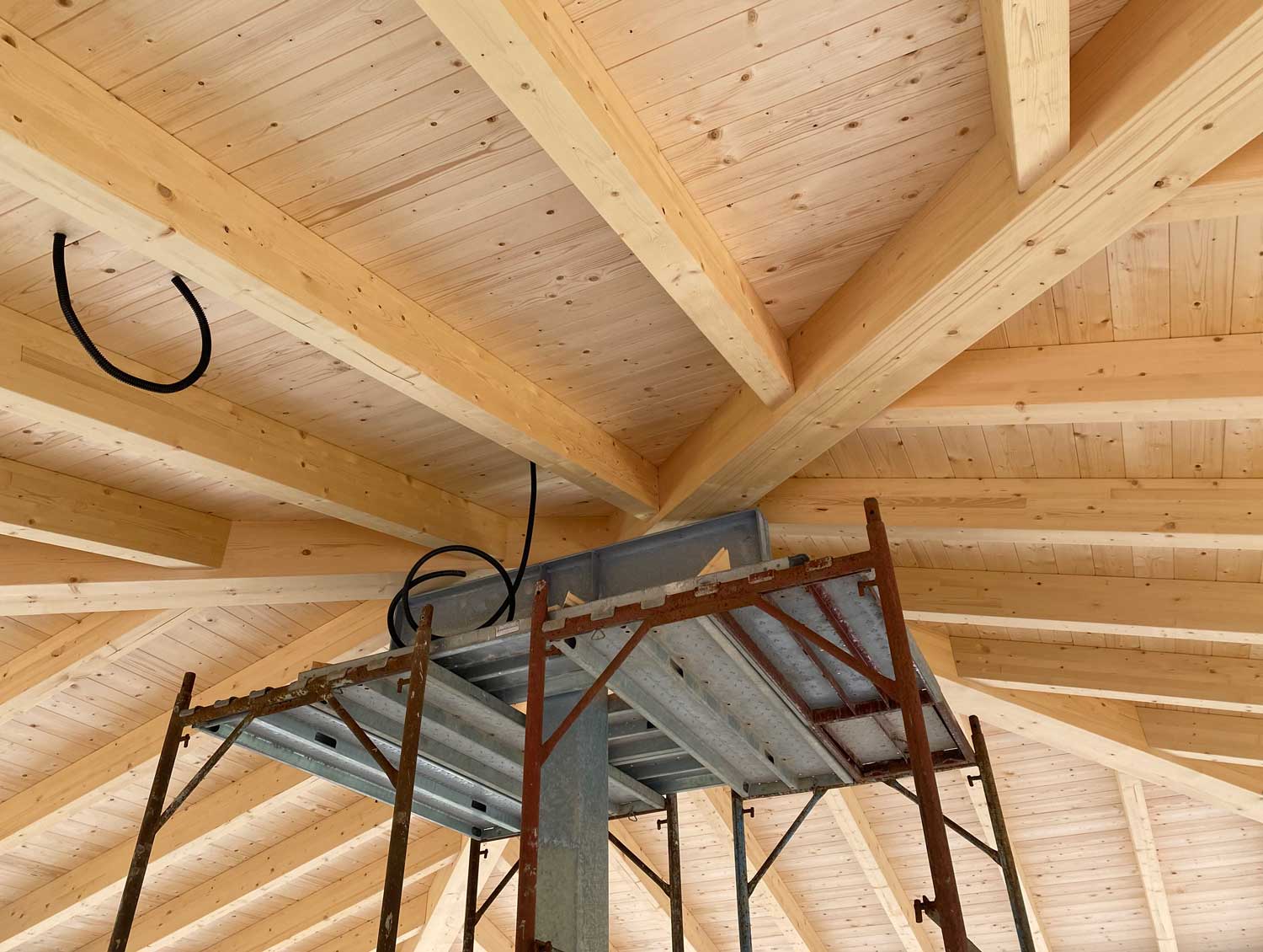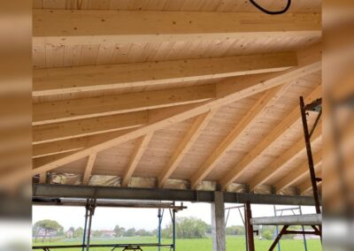 - Copertura con travi in legno che offrono robustezza e un aspetto naturale ed accogliente, sormontata da travetti in legno con doppio assito.