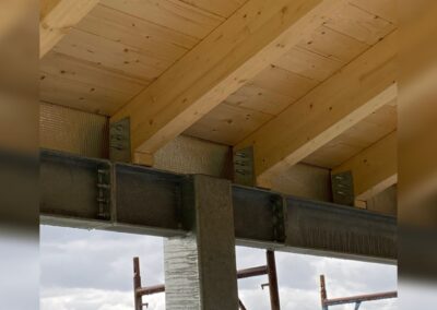 - Solai di piano tipo Hi b Hi-Bond, composti da lamiere grecate in acciaio zincato che collaborano con un getto di calcestruzzo armato, offrendo un’eccellente capacità portante;